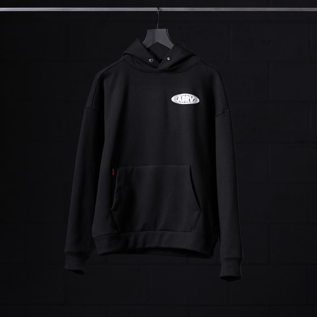 • 0874. Tech-Terry™ Zip Pocket Hoodie - Black "Global Reach"