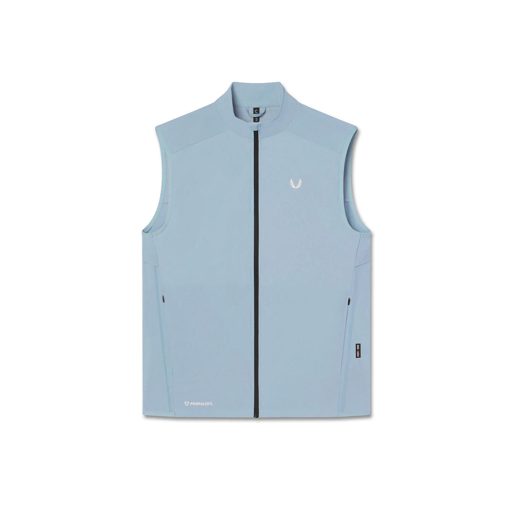 This windbreaker vest blends weather protection and advanced insulation, featuring PrimaLoft® Silver Insulation for lightweight warmth and a Korean-milled AeroTex™ outer shell with specialized wind resistance and a water-resistant DWR finish. Its 40g/m² insulation is ideal for mild cold (35–45°F) or high-activity sports in colder conditions. It includes partial seam tape, bonded seams, a storm flap with mesh ventilation, zipper pockets and reflective details.