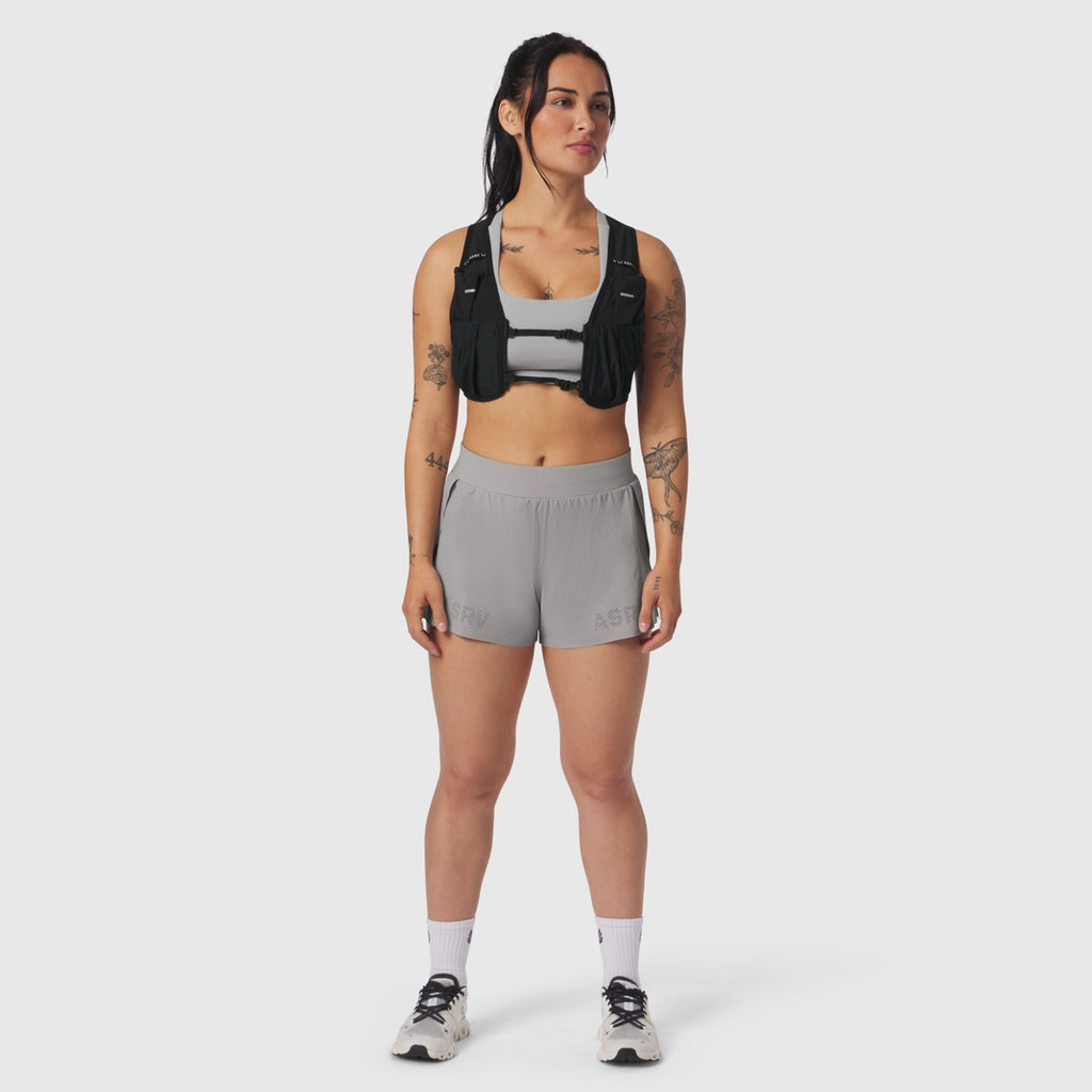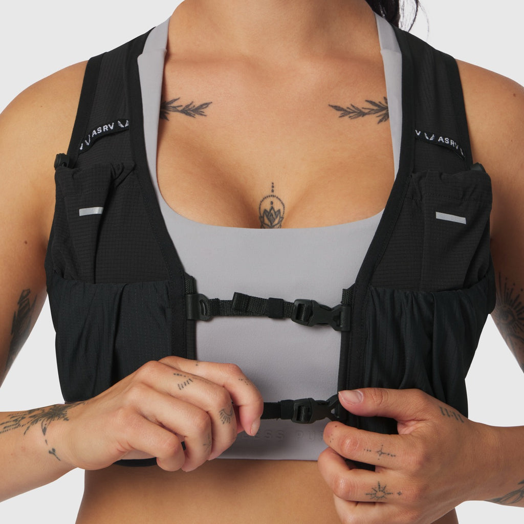 A performance-engineered running vest built for endurance training and outdoor rec. Constructed from sweat-wicking mesh with a grid-patterned perforation layout for maximum breathability and rapid moisture management. Designed with dual front hydration bottle slots, two external gel pockets, and an extra-secure zip pocket integrated into the pack. Adjustable chest and waist straps create a locked-in, bounce-free fit. Reflective heat-pressed ventilation holes along the spine enhance airflow and visibility in low-light conditions.
