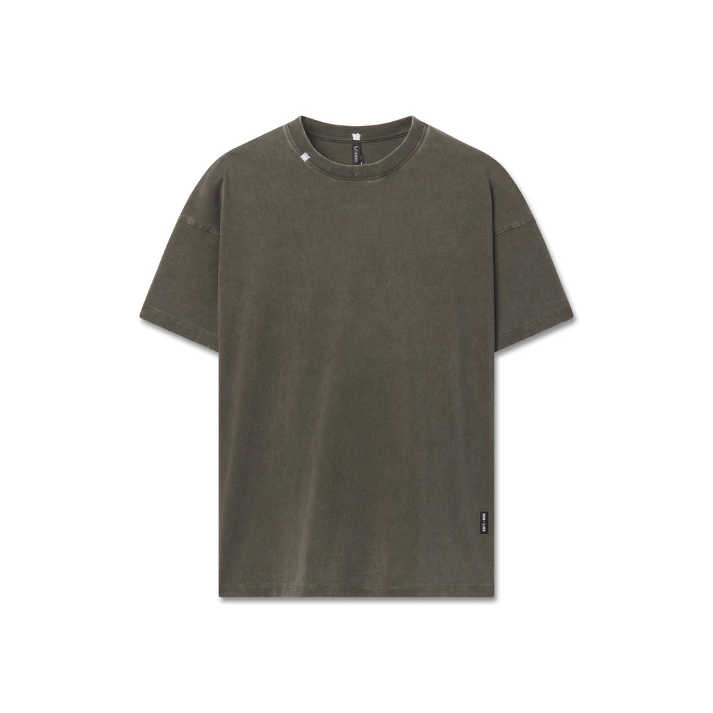 Relaxed-fit tee that blends vintage styling with modern comfort. Constructed from a midweight cotton blend with a soft, worn-in feel and finished with garment-dyed distressing for a washed look. Designed with drop shoulders, wide sleeves, and subtle neckline abrasion for a broken-in aesthetic. A unisex silhouette with elevated detailing, ideal for training or everyday wear.