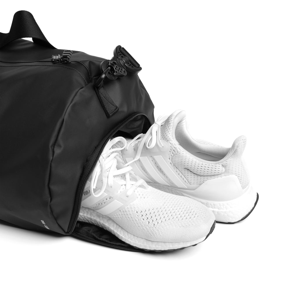 Compact yet full-capacity barrel duffle designed for daily training, the track, and everything in transit. Korean-milled 600D nylon with a 5,000mm water-resistant rating and ripstop nylon lining delivers rugged durability session after session. MetAstics™ Pivot Hooks provide 110kg+ load capacity on a long padded Velcro shoulder strap built for heavy carries. A ventilated side shoe compartment with matte black eyelets isolates footwear from clean gear, while front magnetic Korea buckle straps cinch down a training mat, towel, or extra layers. Waterproof zipper tape on the main compartment, 2-way grenade zip pullers, and bottom vented eyelets complete the design.