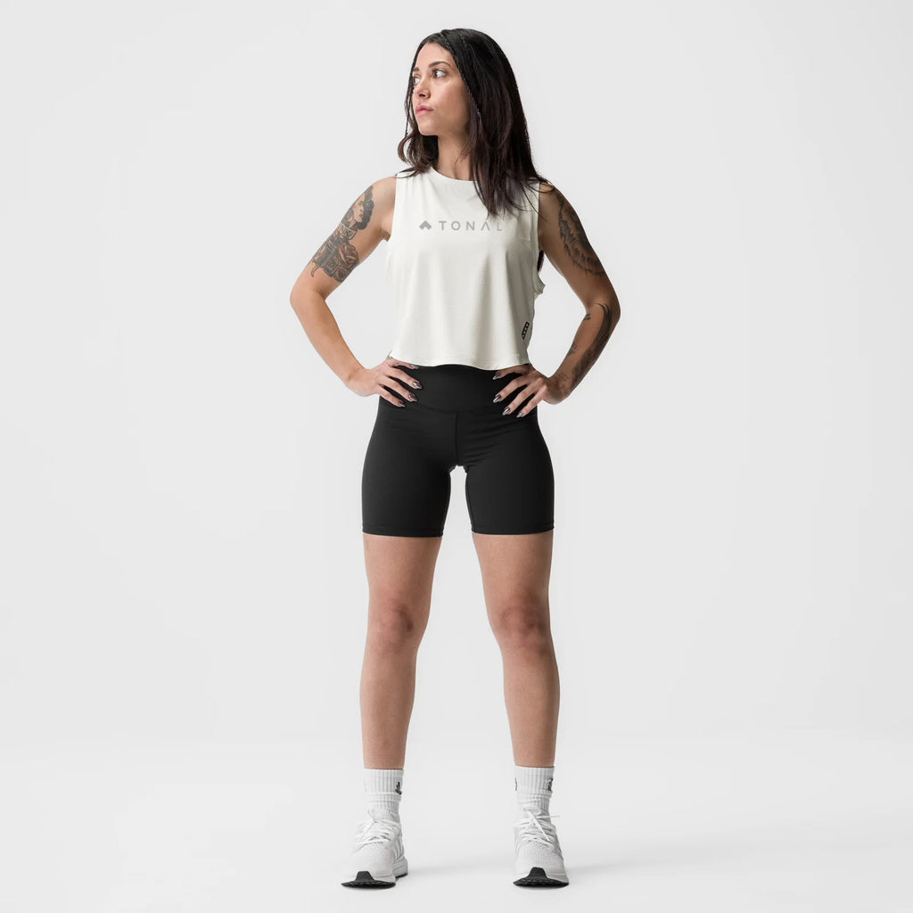 Lightweight mid-crop training tank designed with a curved hem. Made from AeroSilver®, our next generation of silver-infused performance fabric, offers enhanced durability and fiber strength to withstand intense training sessions. The tank features side splits with reinforced tack seams for added flexibility, while reflective logo details provide increased visibility during low-light workouts.