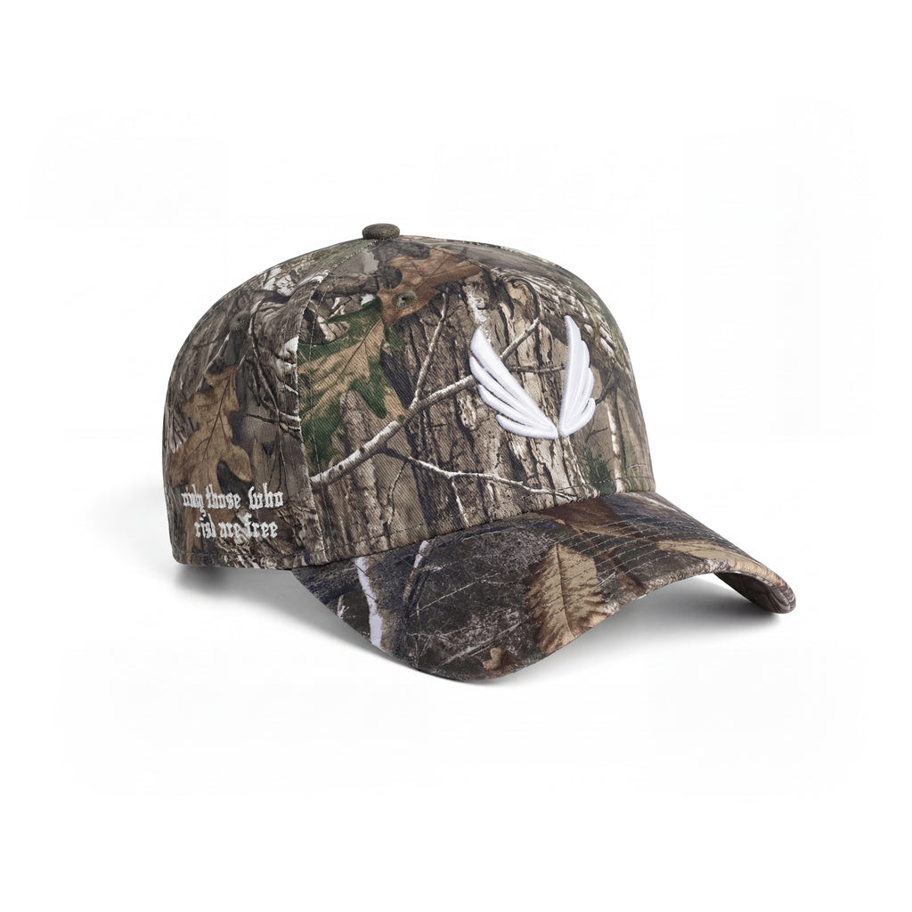 New Era 9Forty® A-Frame in Realtree® Edge Camo. Embroidered wings logos on the front, "Only Those Who Risk Are Free" on the side and "ASRV" on the rear.