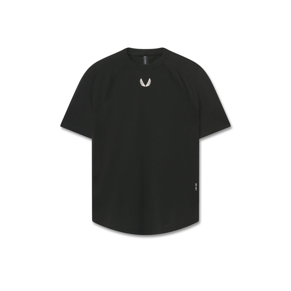 Soft performance warp-knit with high elasticity and shape retention. Laser perforated for maximum airflow.