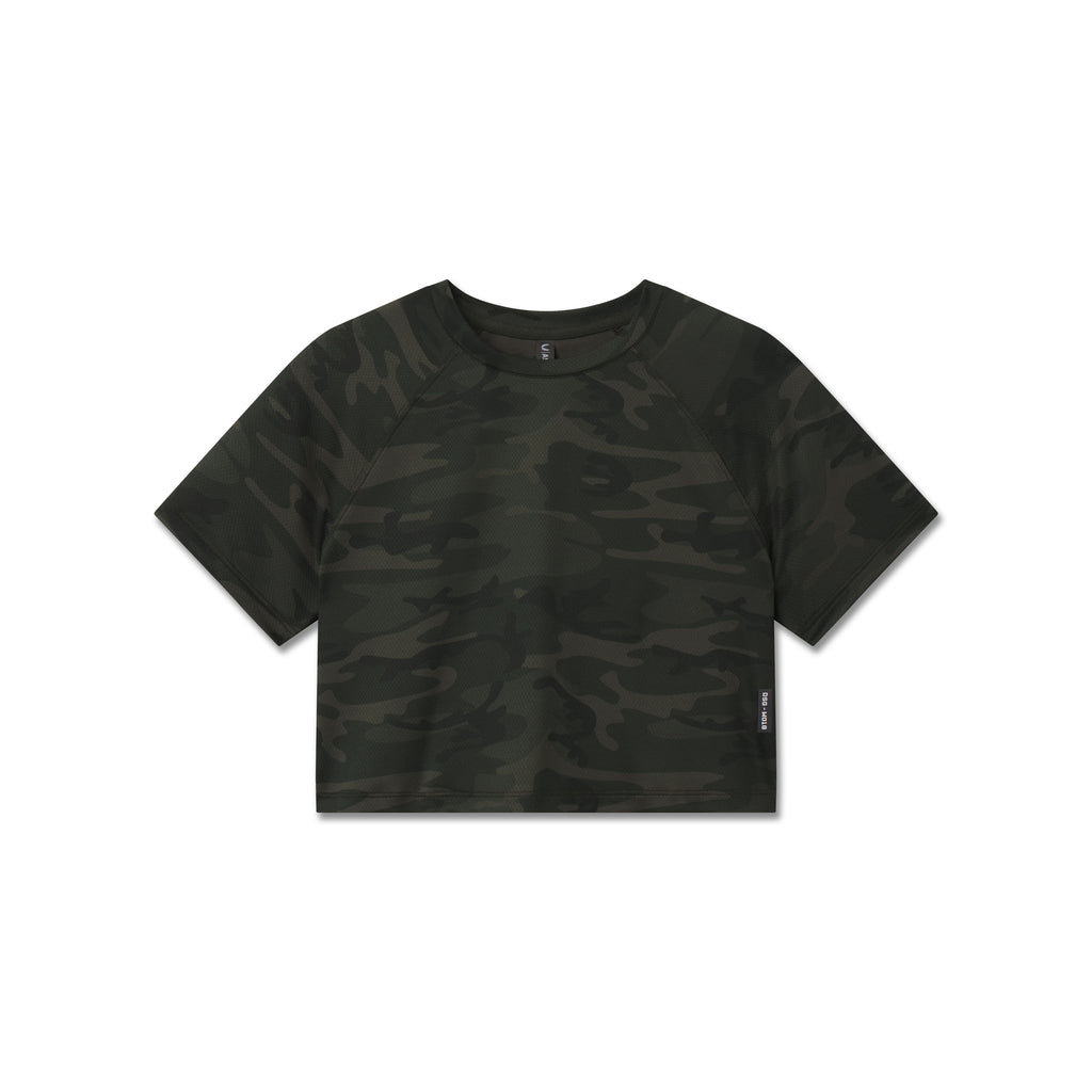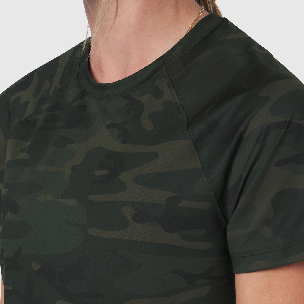 Lightweight mid-crop training tee made from AeroSilver®, our next-generation silver-infused performance fabric built for durability, breathability, and odor resistance. Designed with a curved hem and side splits reinforced with tack seams for added flexibility. Reflective logo details provide visibility during low-light workouts.
