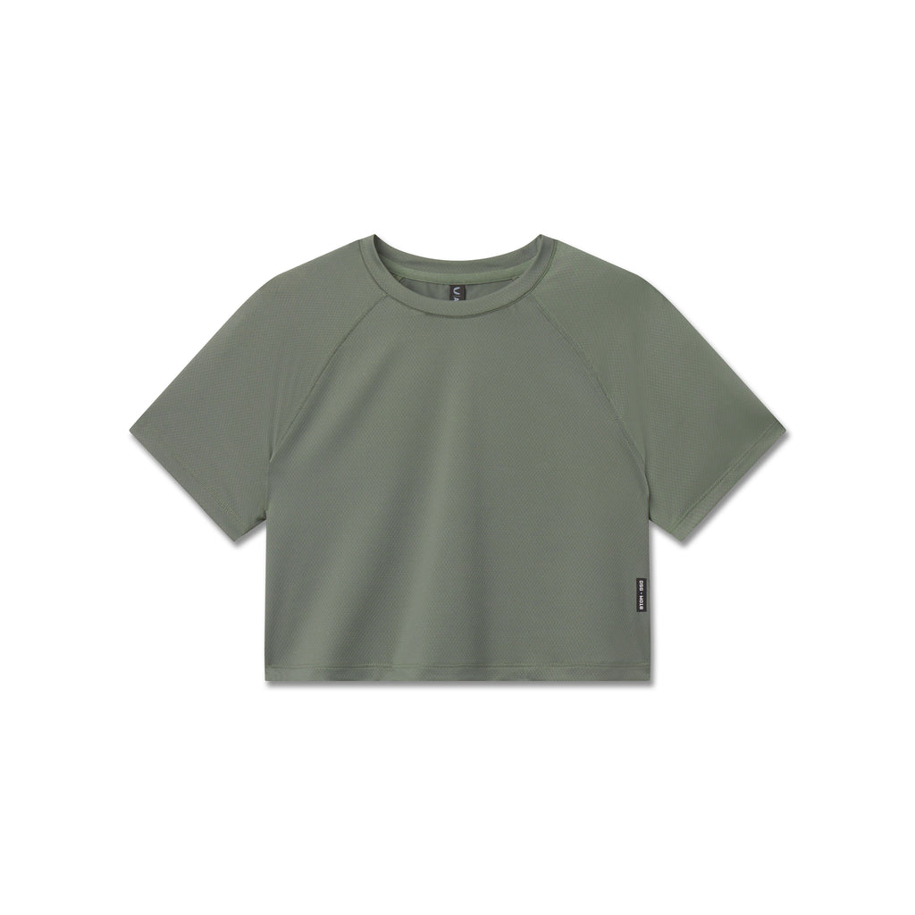 Lightweight mid-crop training tee made from AeroSilver®, our next-generation silver-infused performance fabric built for durability, breathability, and odor resistance. Designed with a curved hem and side splits reinforced with tack seams for added flexibility. Reflective logo details provide visibility during low-light workouts.