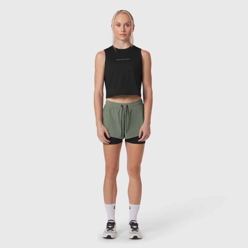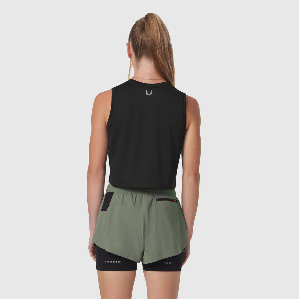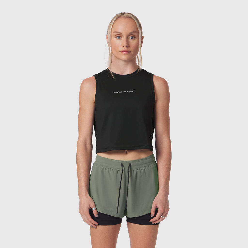 Lightweight mid-crop training tank constructed from AeroSilver®, our silver-infused performance fabric engineered for durability, odor control, and breathability. Designed with a curved hem and side splits reinforced with tack seams for added mobility. Finished with reflective logo details for visibility during low-light workouts.