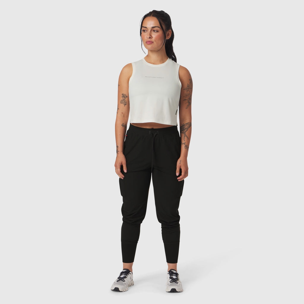 Lightweight mid-crop training tank constructed from AeroSilver®, our silver-infused performance fabric engineered for durability, odor control, and breathability. Designed with a curved hem and side splits reinforced with tack seams for added mobility. Finished with reflective logo details for visibility during low-light workouts.