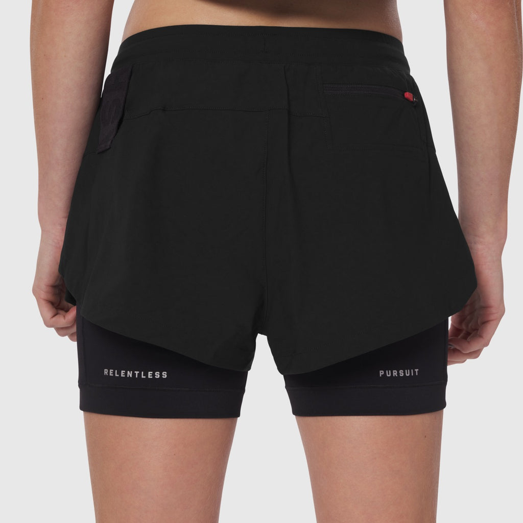 Our most popular training shorts of all time, engineered for women’s performance. The outer shell is constructed from Tetra-Lite®, our signature 4-way stretch fabric, with reinforced tack-seam side splits for full range of motion and increased durability. The built-in WarpFlexx™ liner features two media pockets for bounce-free storage, mesh ventilation zones, and Fuze® anti-odor technology. External details include a towel loop and a zippered back pocket. Reflective branding and heat-dipped drawstrings complete the design.