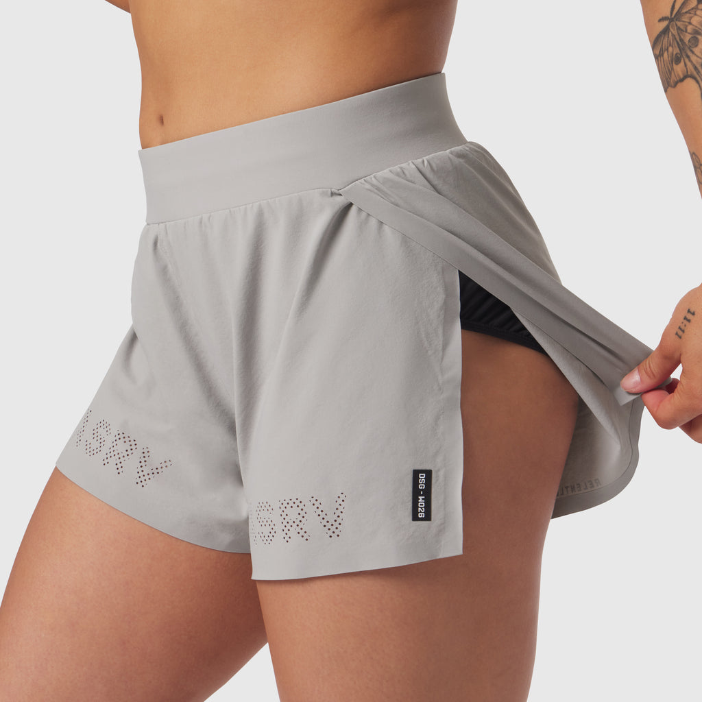 A high-performance run short built for unrestricted movement. Constructed from Aerotex™, our ultra-lightweight stretch-woven shell with a soft, textured handfeel and quick-dry properties. Features a high side-split design with reinforced tack seams for maximum range of motion and a supportive mesh liner made from a high-stretch nylon/elastane blend for next-to-skin comfort. Includes a channeled waistband with internal drawstrings for a secure fit and laser-perforated ASRV branding across the front. Finished with reflective detailing for visibility.