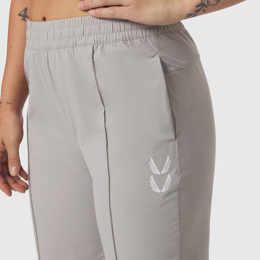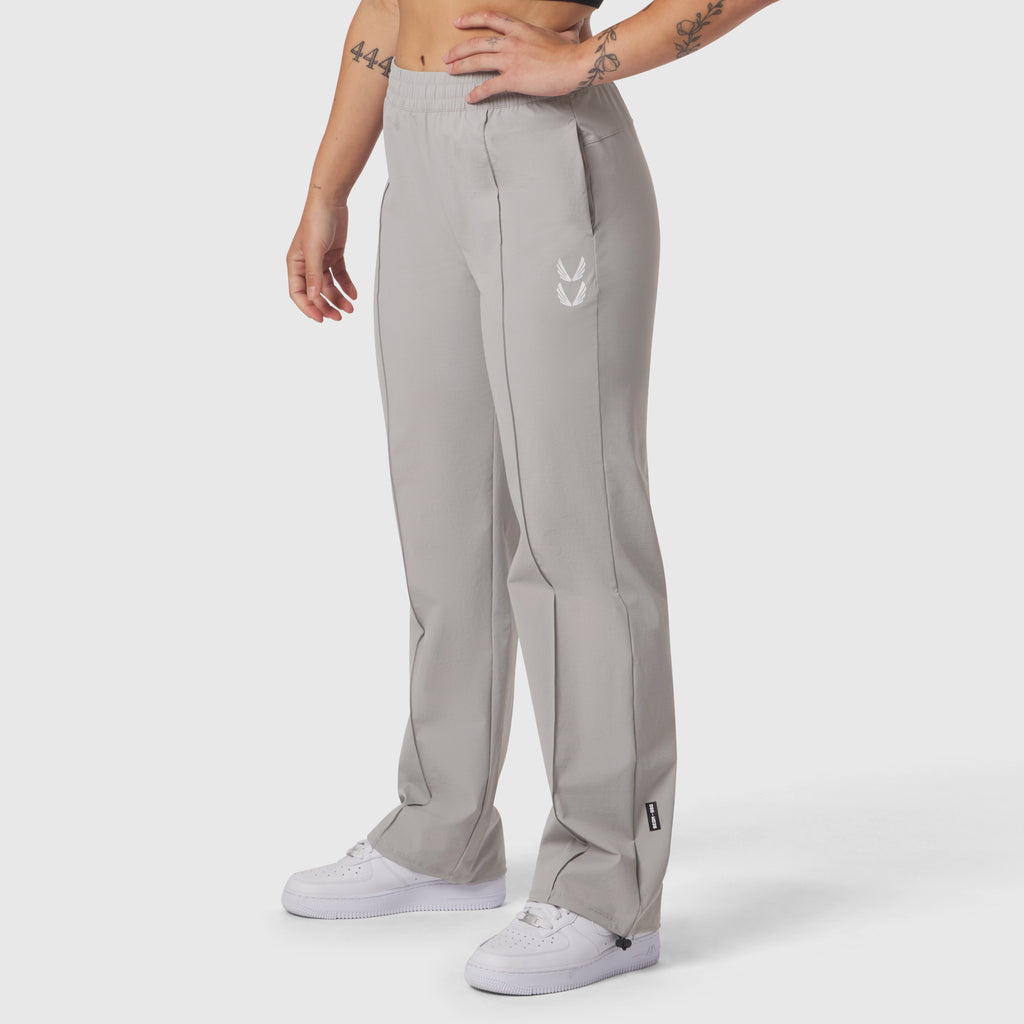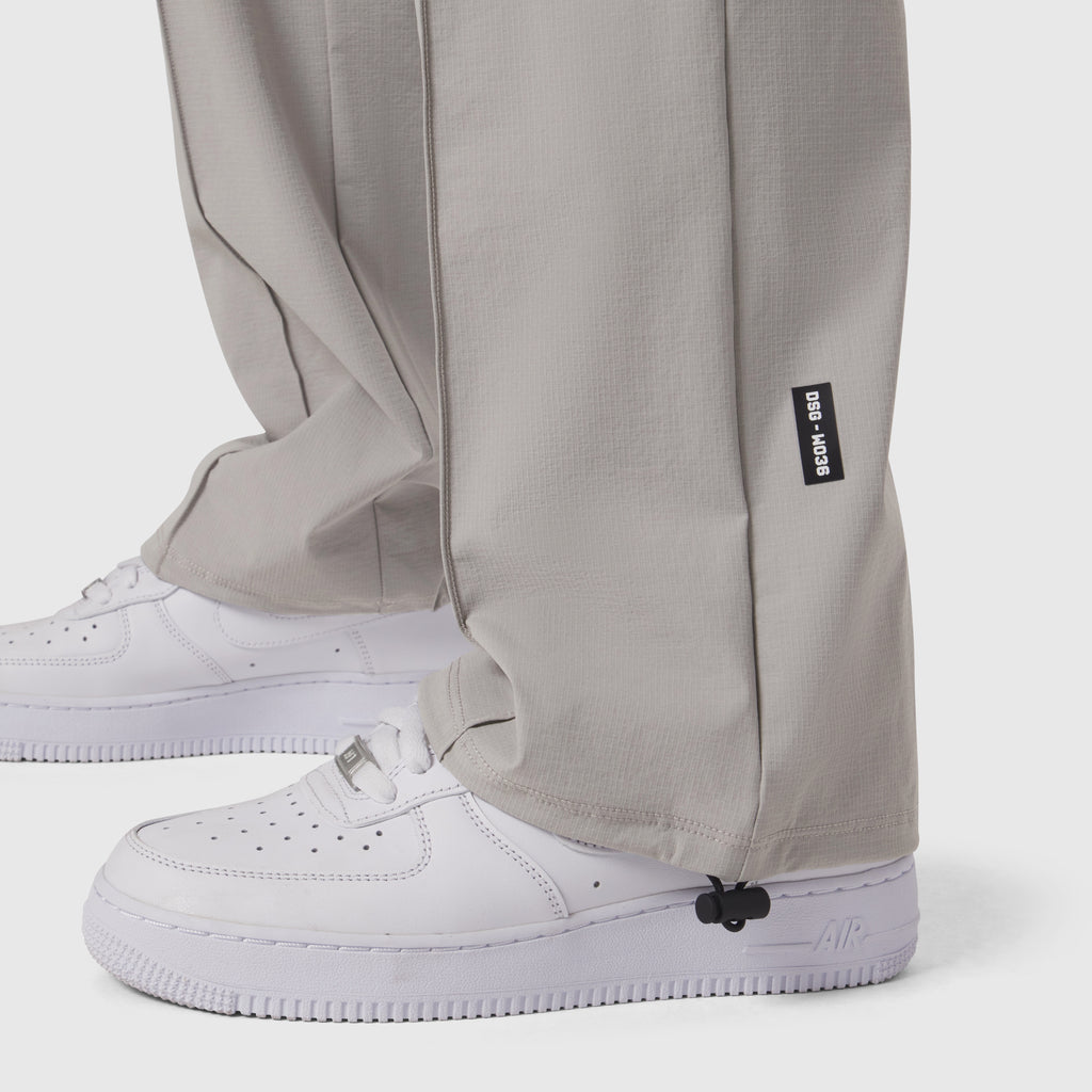 Relaxed-fit track pant constructed from a durable ripstop fabric with four-way stretch, offering lightweight performance and all-day comfort. Designed with an elastic waistband and internal drawstrings. Functional storage includes two front pockets, a secure zip pocket, and a welted back pocket. Adjustable shock cord hems allow for a custom taper, while reflective branding along the back right completes the design.