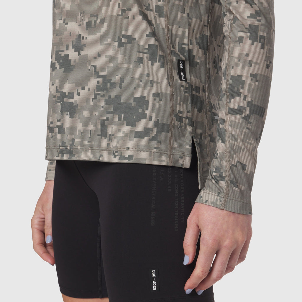 Lightweight training longsleeve engineered with Polartec® Delta, a cooling fabric that leverages specialized radiators and hydrophobic/hydrophilic fibers to increase airflow, regulate drying, and extend the body’s natural heat-dissipation during high-output training.