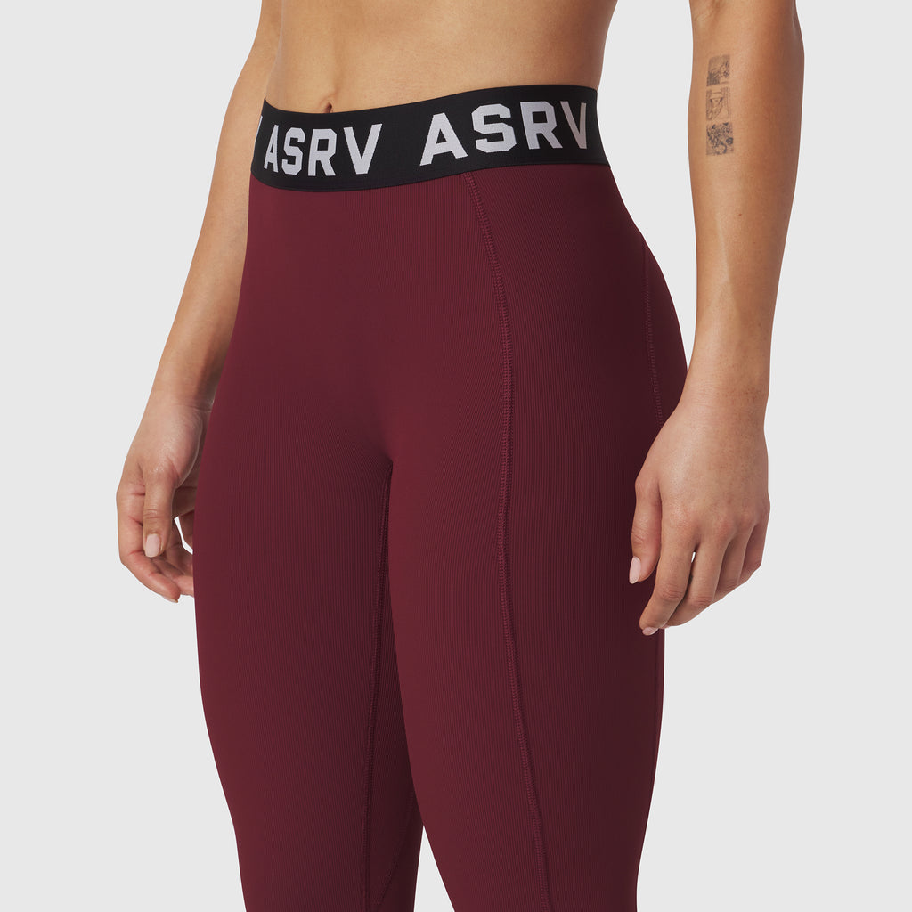 High-stretch, mild-compression LYCRA® Ribbed Legging built for training and everyday wear. Ribbed construction delivers quick-dry performance with a sculpted, second-skin fit. Secure oversized jacquard waistband with bold ASRV branding provides support through any movement. 7/8 length offers versatile coverage for the gym or beyond.